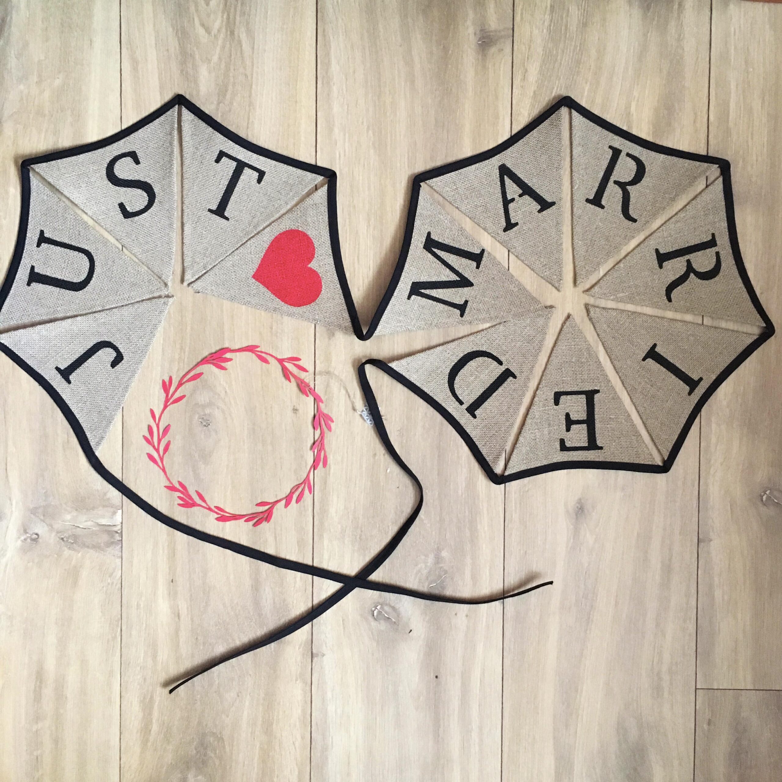 Incontournable pour un mariage chic et champêtre, cette jolie guirlande en lin « Just Married » est idéale pour la décoration des salles de mariage.