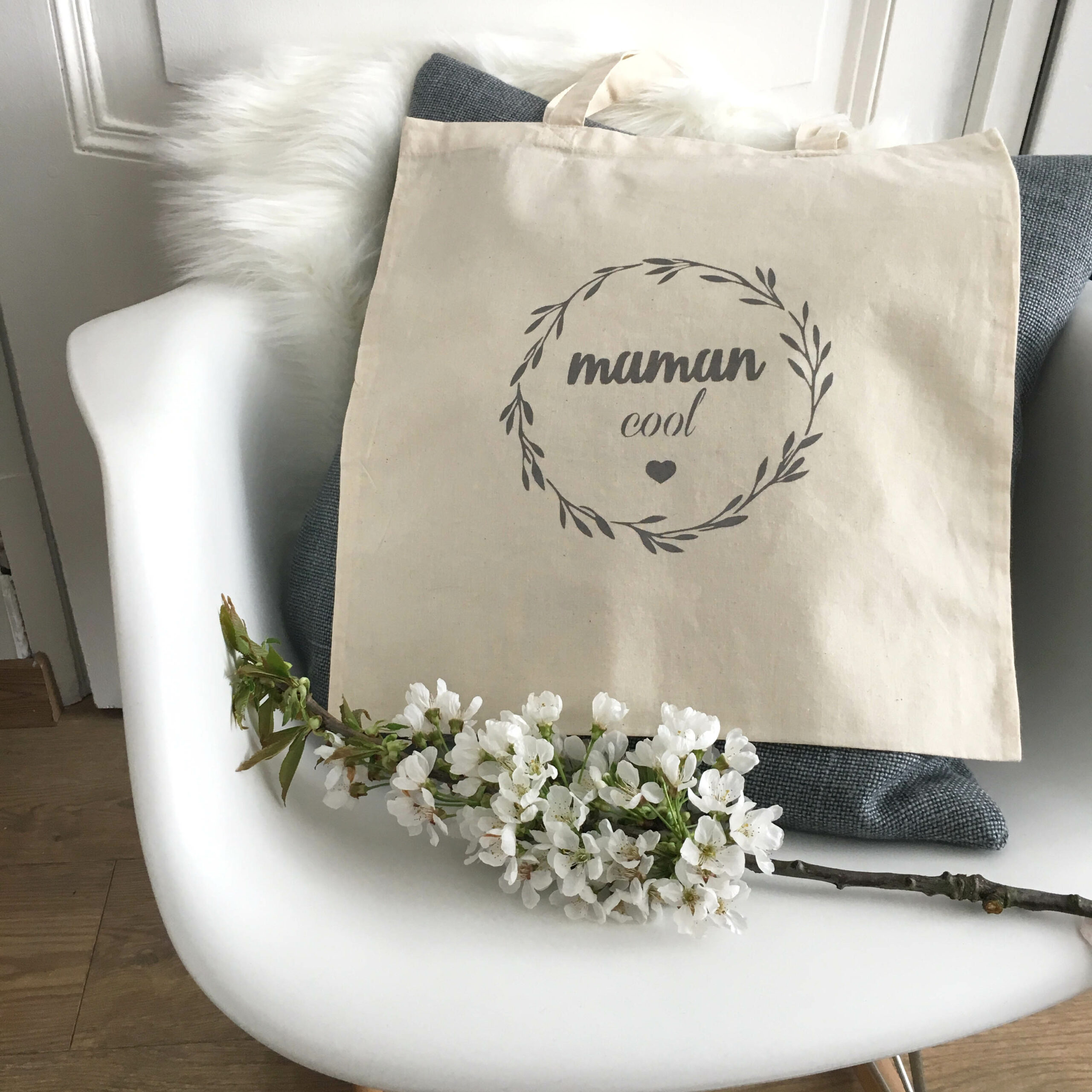Sac 100% coton personnalisé à la main au pochoir. Ce tote bag est idéal à l’occasion de la fête des mères pour dire je t’aime à toutes les mamans.