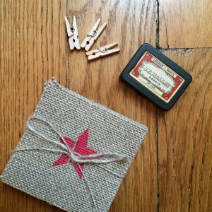 Coffret Etiquettes lin Coffret de 4 étiquettes en lin naturel avec un réalisé à la main au pochoir. MOTS :