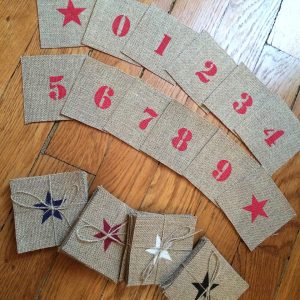 12 Coupons 100% LIN Chiffres  (0-1-2-3-4-5-6-7-8-9) + 2 étoiles rouges Tous les détails sont réalisés au pochoir à la main.