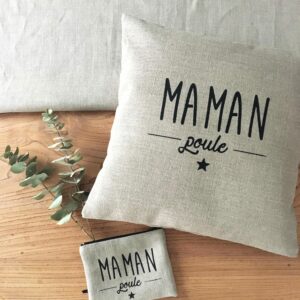 Collection Fête des Mères 2018  Coffret « Maman Poule » Le contenu du coffret :  – Un coussin 100% lin entièrement réalisée à