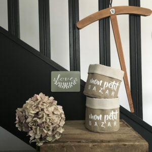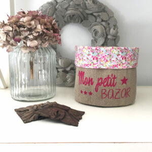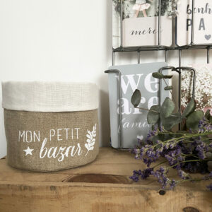 Fourre-tout MON PETIT BAZAR N°3- Taille M Détails : « Mon Petit Bazar » réalisé en blanc à la main au pochoir