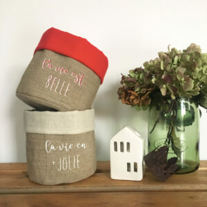 Des fourre-tout, des vides-poches et paniers de rangements en lin épais, doublés en lin clair & léger qui trouveront facilement une place dans votre maison (entrée, salon, salle de bain…)