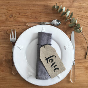 Coffret Etiquettes lin Coffret de 4 étiquettes en lin (naturel ou blanc) avec des mots réalisés à la main au