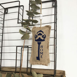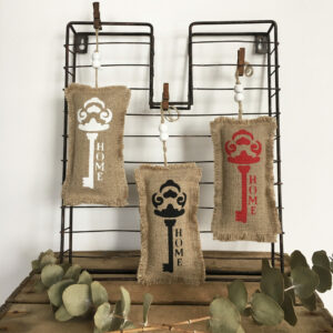 Pampille décorative 100% lin Détails : les clés sont réalisées au pochoir à la main et les liens sont en